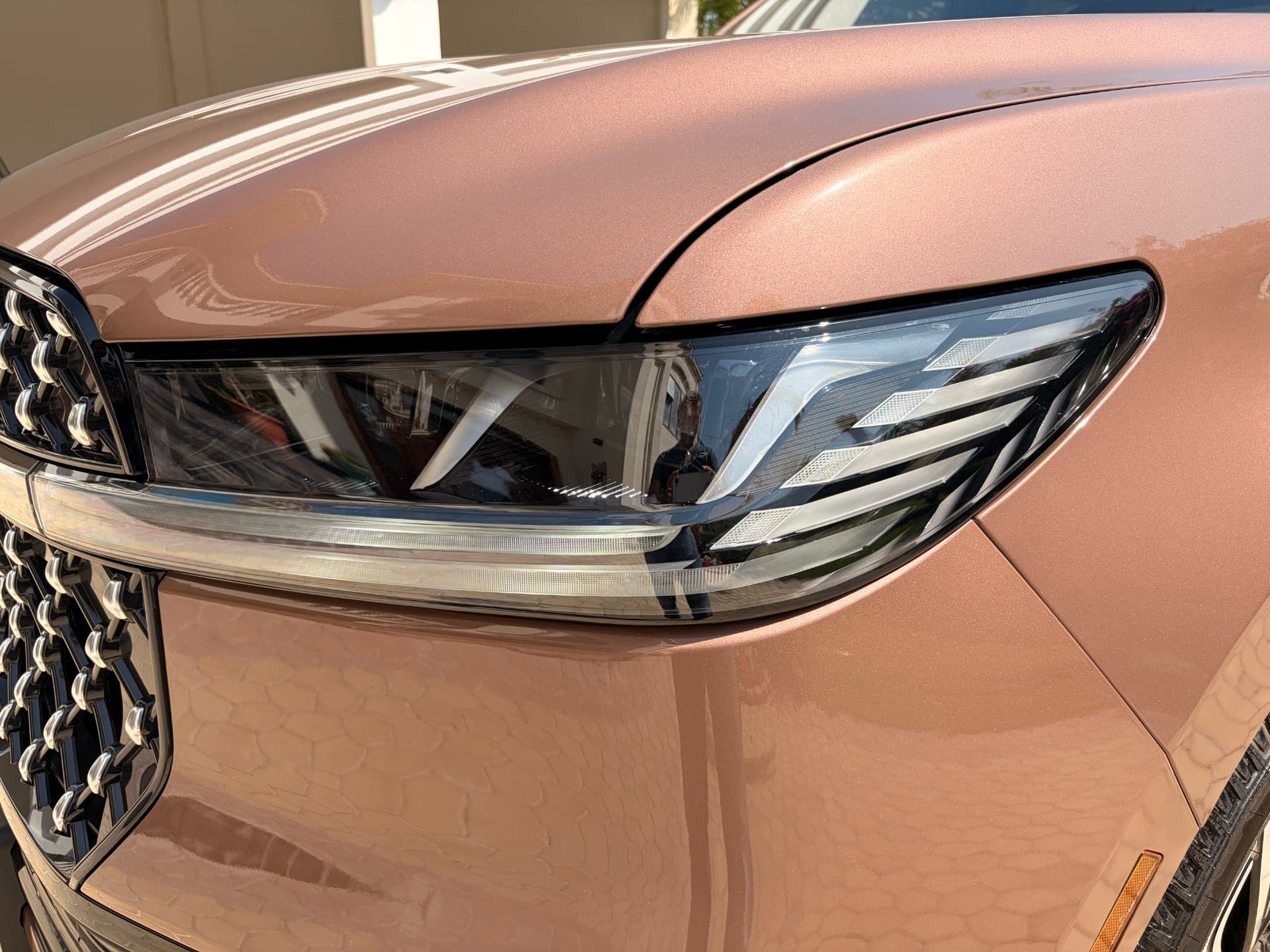Photographs do not do the Sunrise Copper Metallic justice — in pictures, it looks like it's trying to make a statement. In person, parked under a Dubai afternoon sky, it's warmer and more restrained than you'd expect. There's a pearlcoat layer that shifts it from copper to bronze depending on the angle and the light, and the overall effect is confident without being loud. Will people stop and stare on Sheikh Zayed Road? Probably not. Is that a bad thing for a car positioning itself as a luxury vehicle rather than a look-at-me one? I'd argue no.