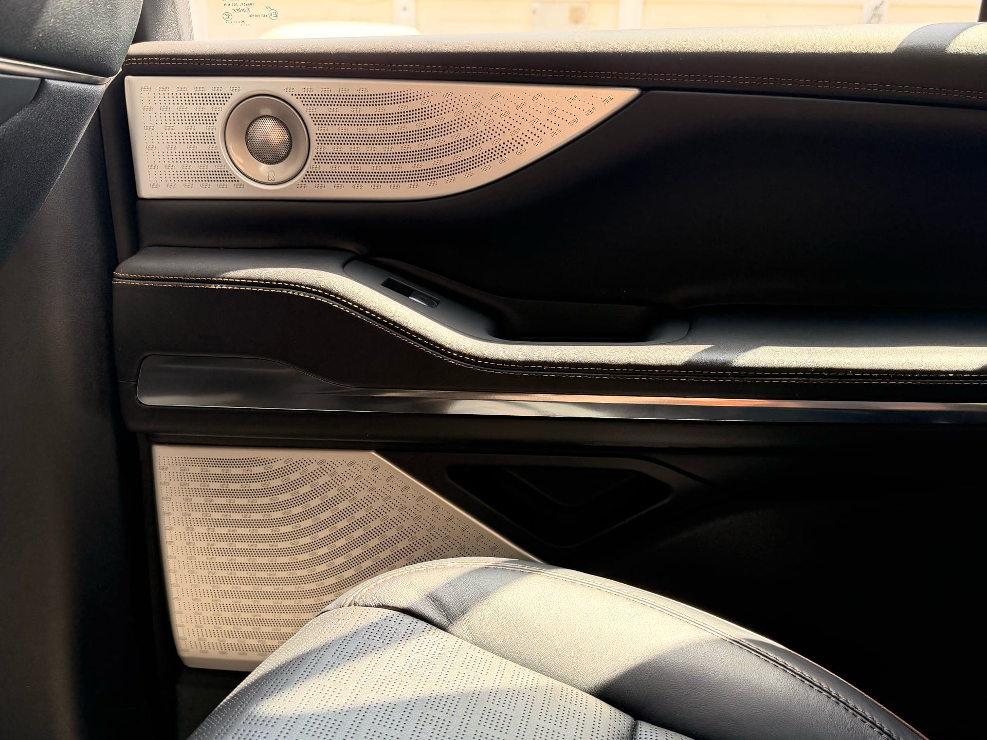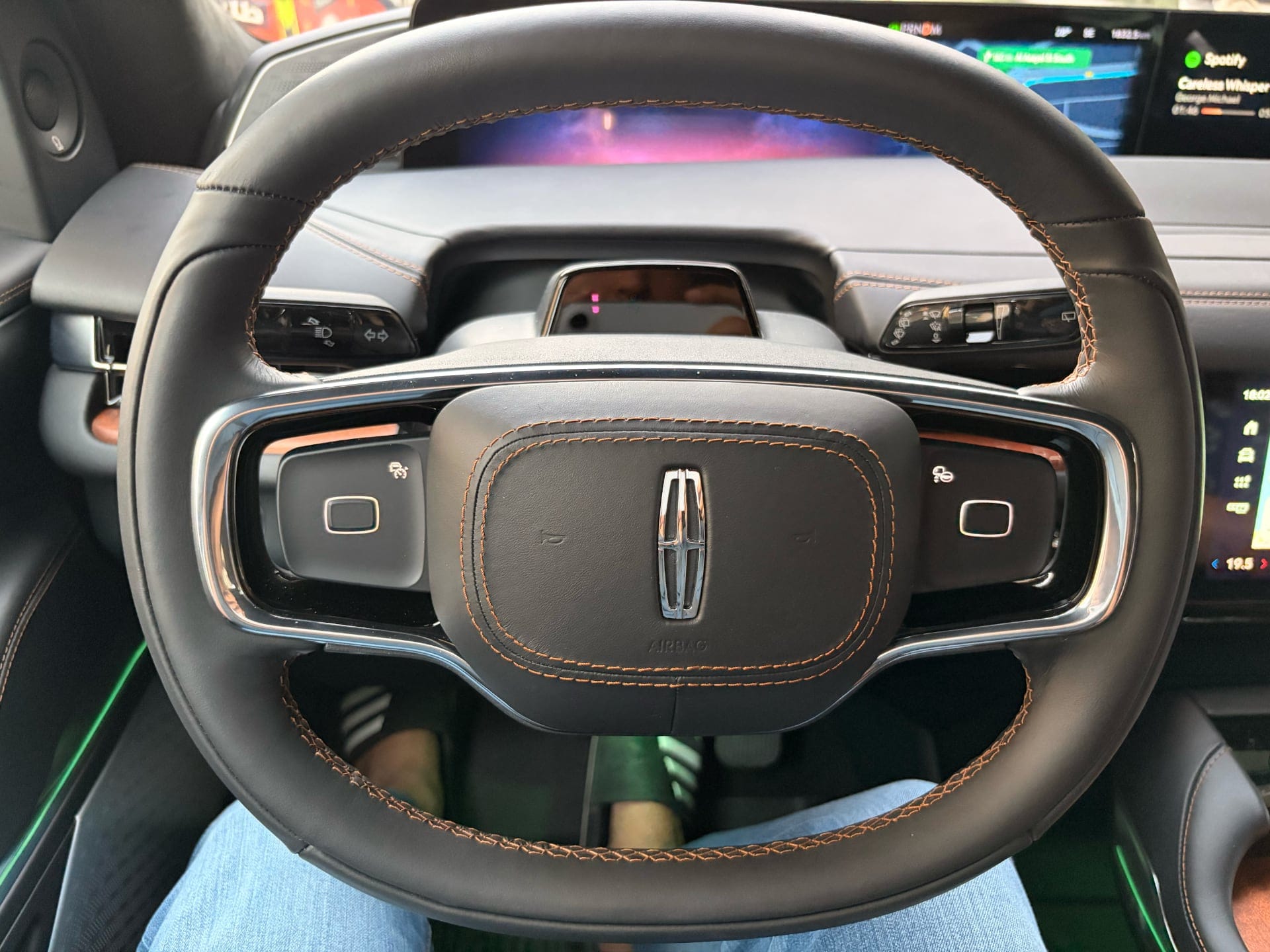 The Revel Ultima 3D system with 28 speakers is a different matter entirely. It's outstanding — spatial, detailed, capable of filling this very large cabin with sound in a way that makes even a motorway commute feel like an event. Lincoln preloads a demo track specifically designed to show off what the system can do, and the first time you play it, you'll understand what 28 speakers in a well-tuned space actually sound like. Spotify also sounds good, but not demo-track good. That's a streaming compression problem, not a speaker problem.