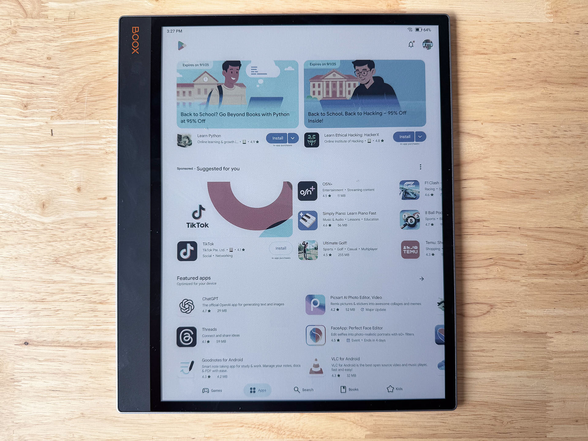 The Tab X C runs Android 13 with full Play Store support, which means you’re not stuck with a limited set of apps. You can install Kindle, Kobo, Notion, Libby, Pocket, Chrome, Google Drive, and pretty much anything else you already use. Everything works out of the box, with no need for workarounds or sideloading, and no ecosystem lock-in.