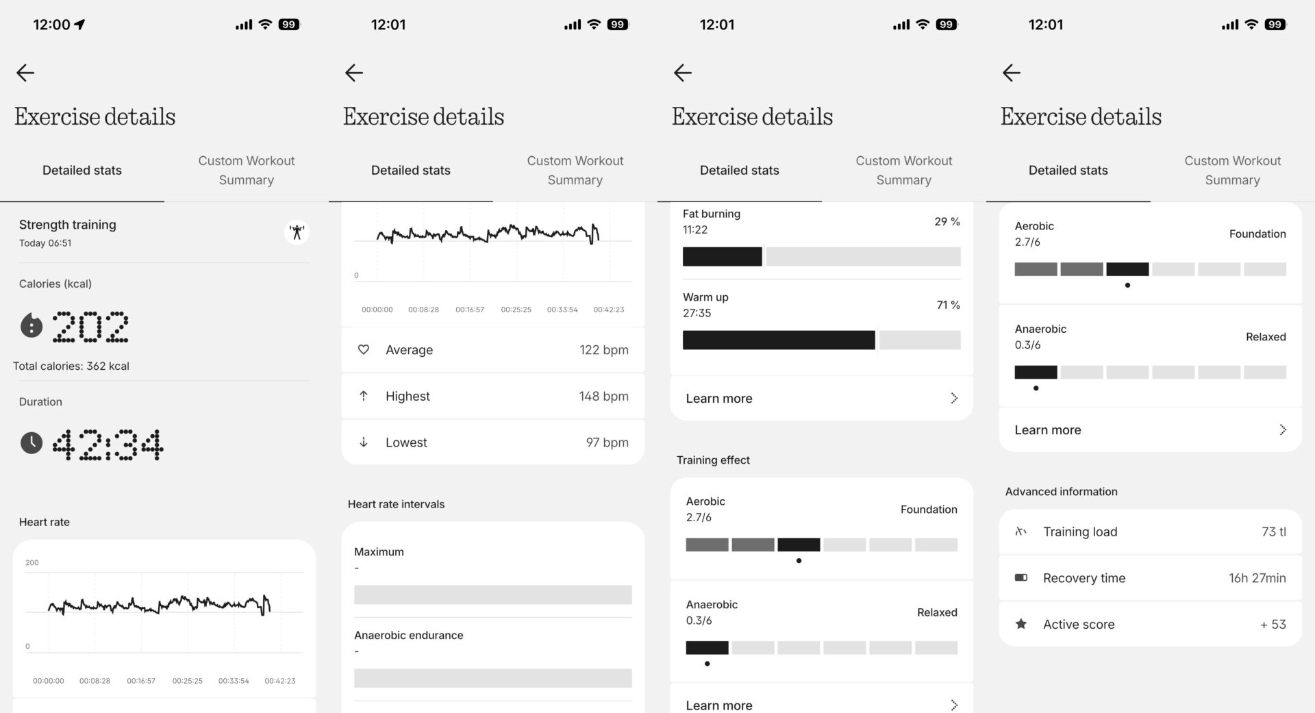 But it’s not like I am a lazy bum, alright. I do hit the gym five times a week, and I have used the watch to track my output. I chose the Strength Training mode to track my daily routine, which displays my total calories burned, workout duration, average BPM, fat-burning zone, training load, and more.