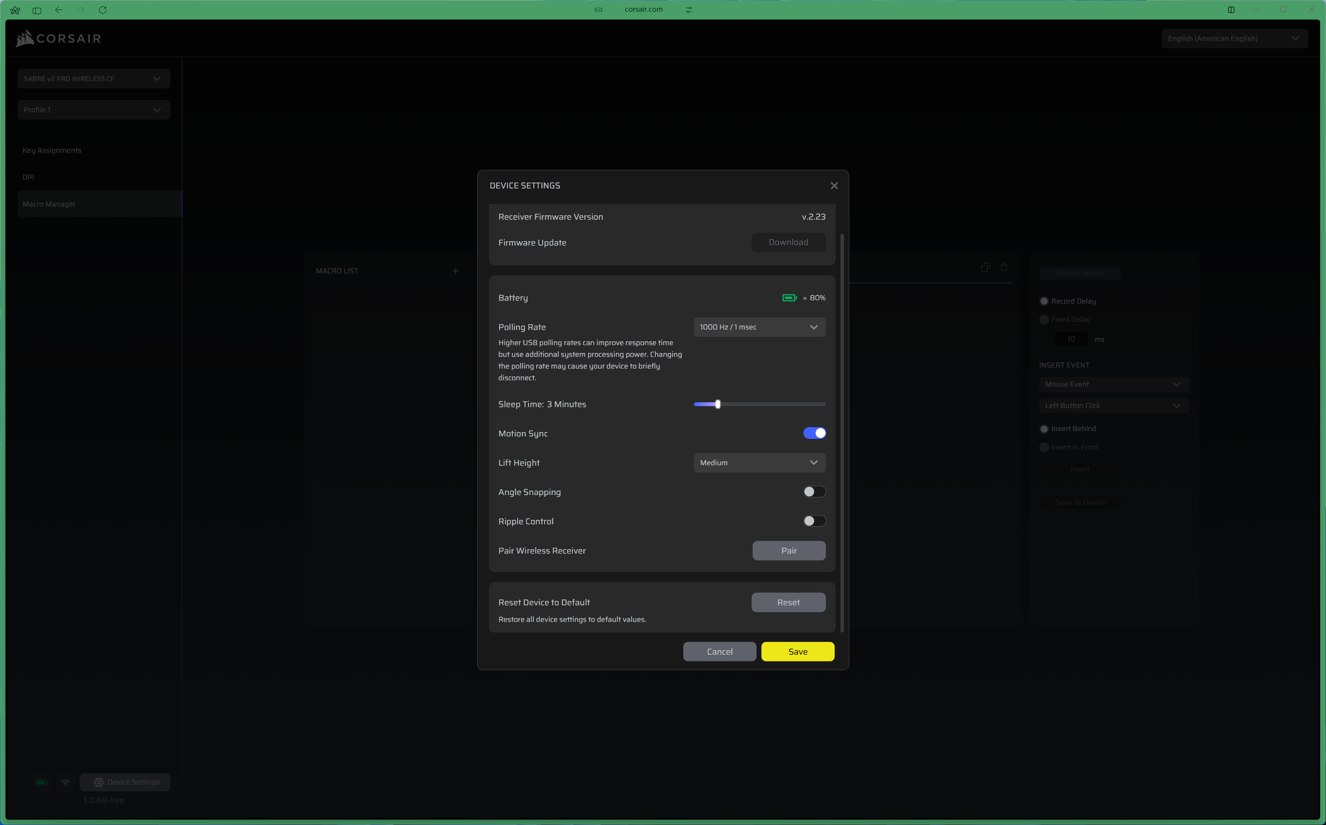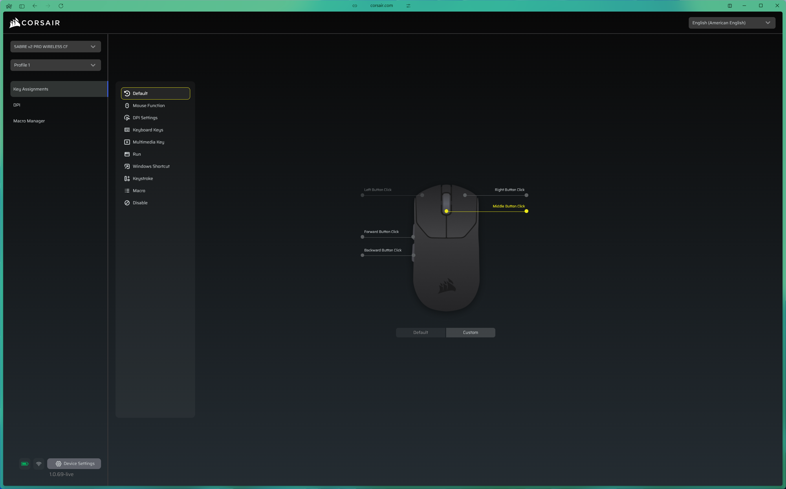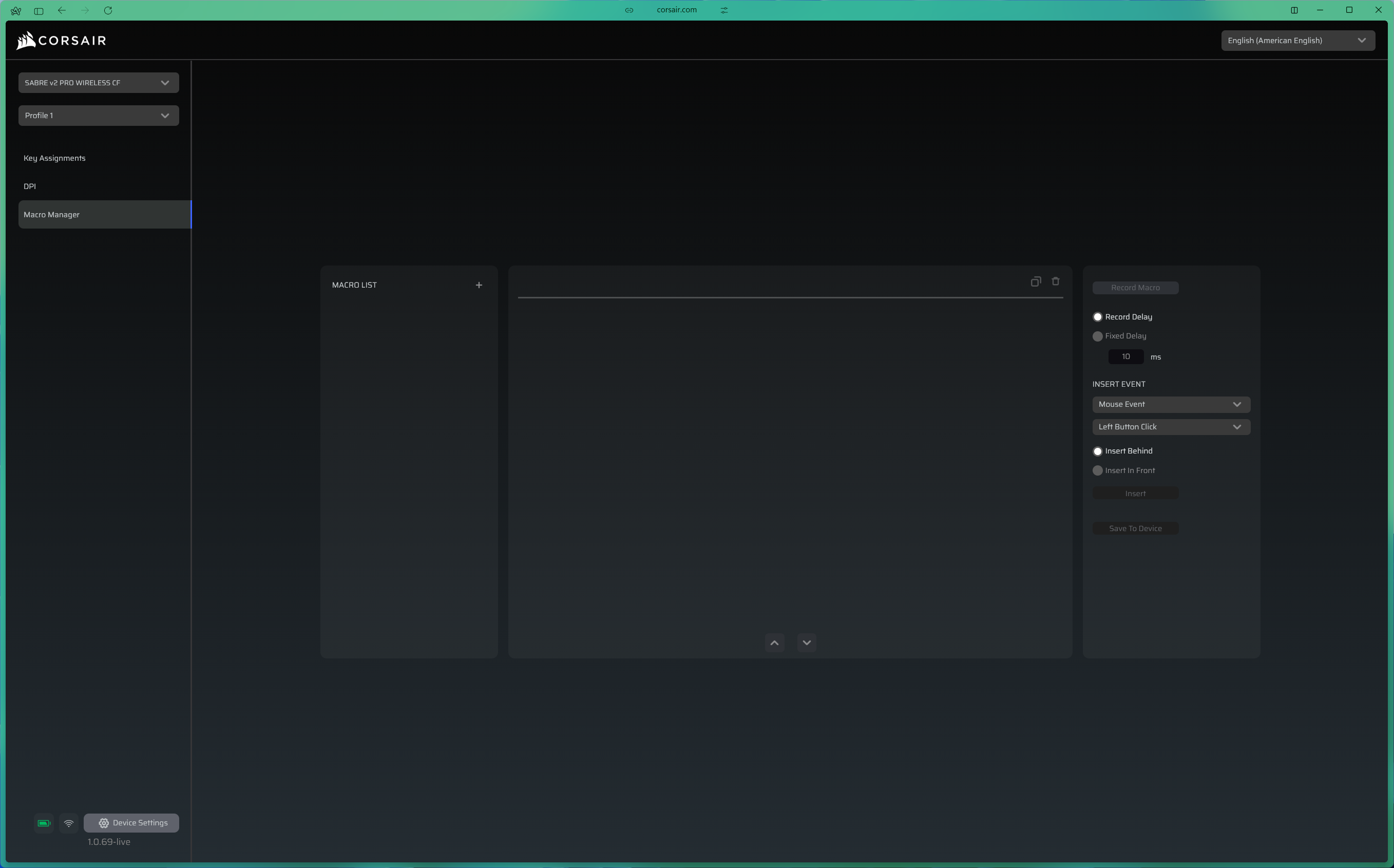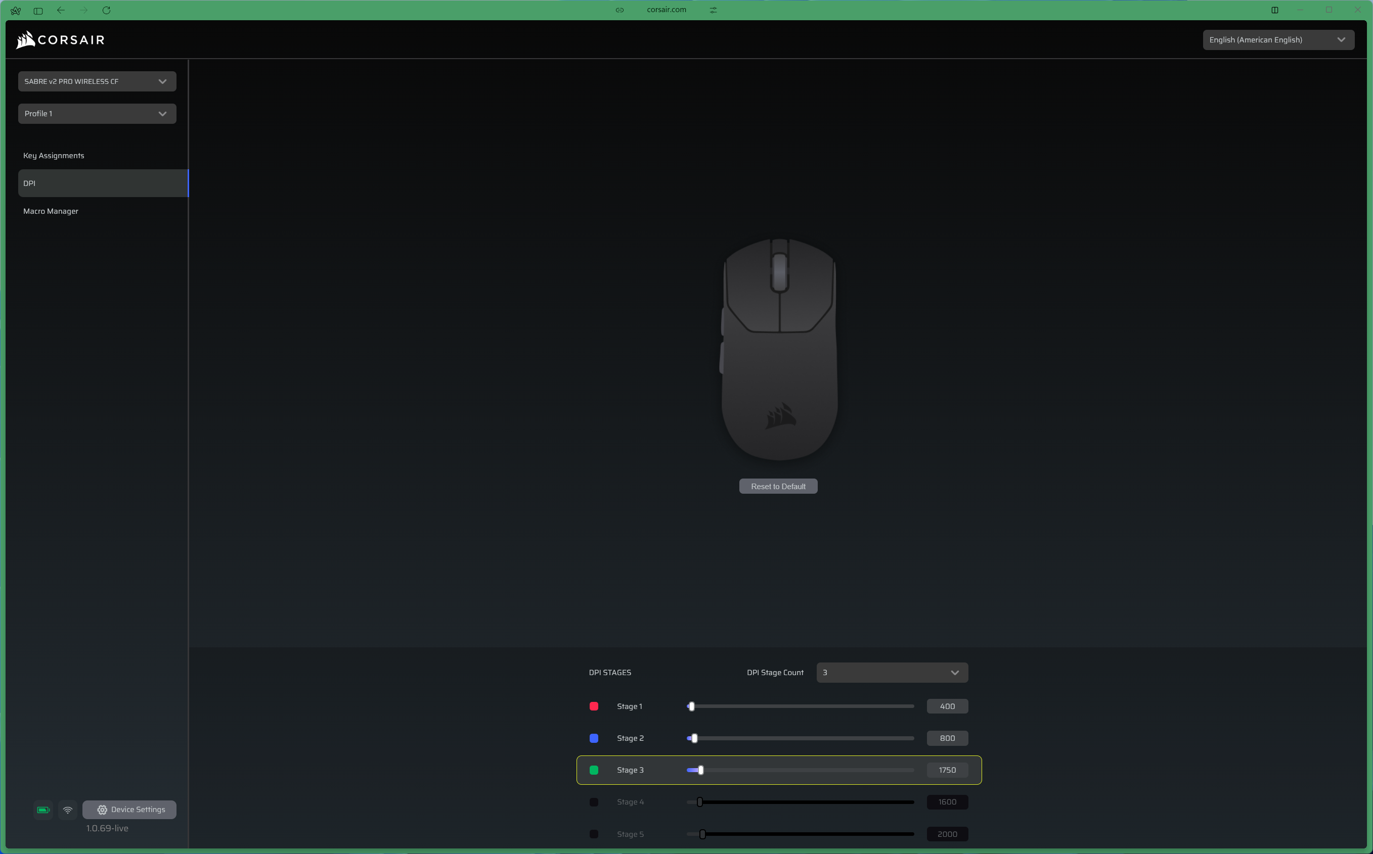 Corsair has moved away from its heavier iCUE software for the Sabre V2 Pro line. Instead of installing yet another background process on your machine, configuration is handled through the Corsair Web Hub - a browser-based tool that loads reasonably quickly, covers all the essentials, even if it looks comparatively barebones.