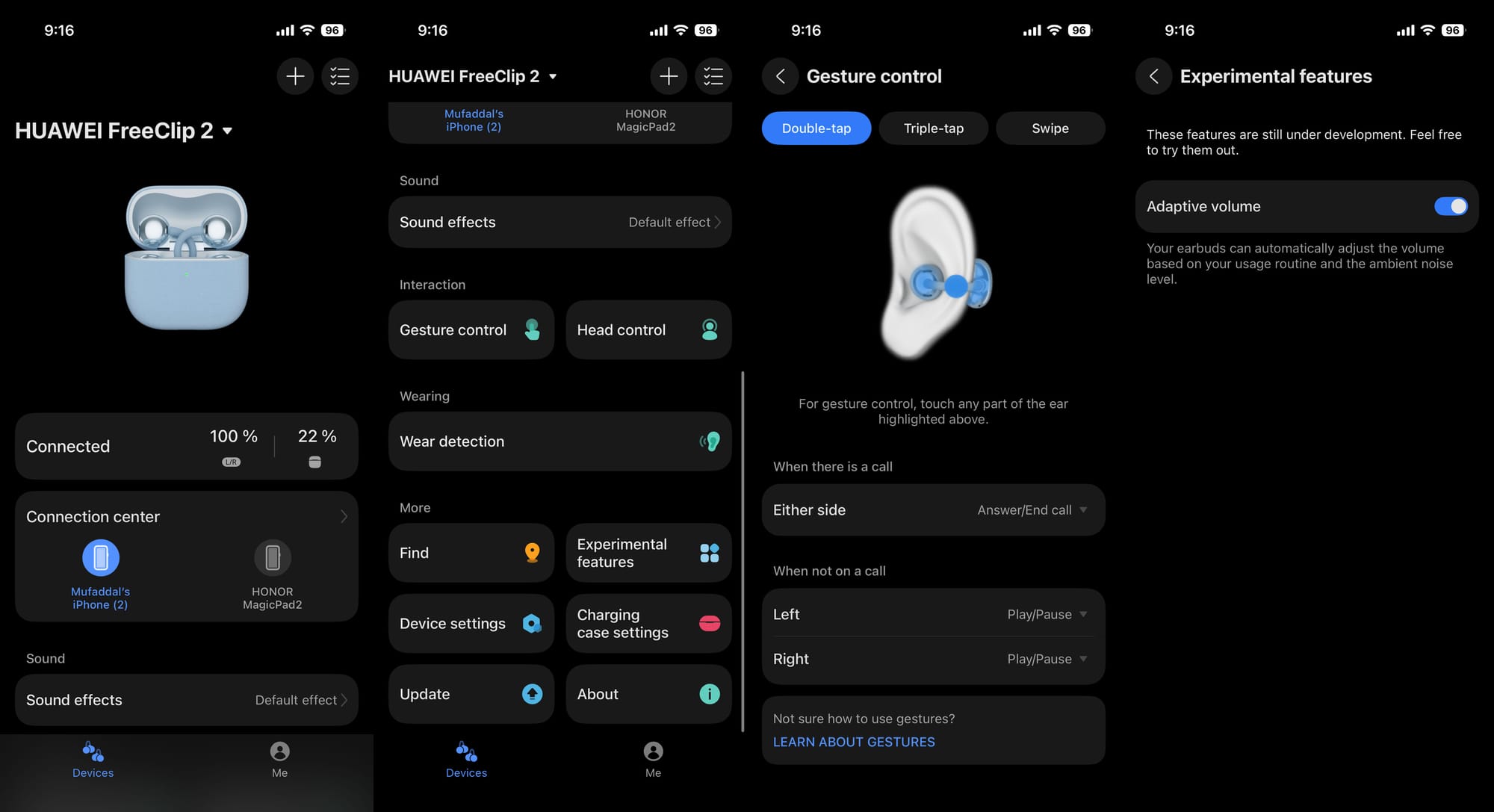 Huawei also includes adaptive volume feature that uses an AI audio chip to intelligently adjust loudness based on your surroundings, ensuring your audio is always clear without constant manual adjustments. Huawei notes that it’s currently in a trial phase and disabled by default, so it’s not something you will necessarily be using out of the box. I did not feel any difference in volume whether I was at home or out taking a walk in December’s windy conditions.