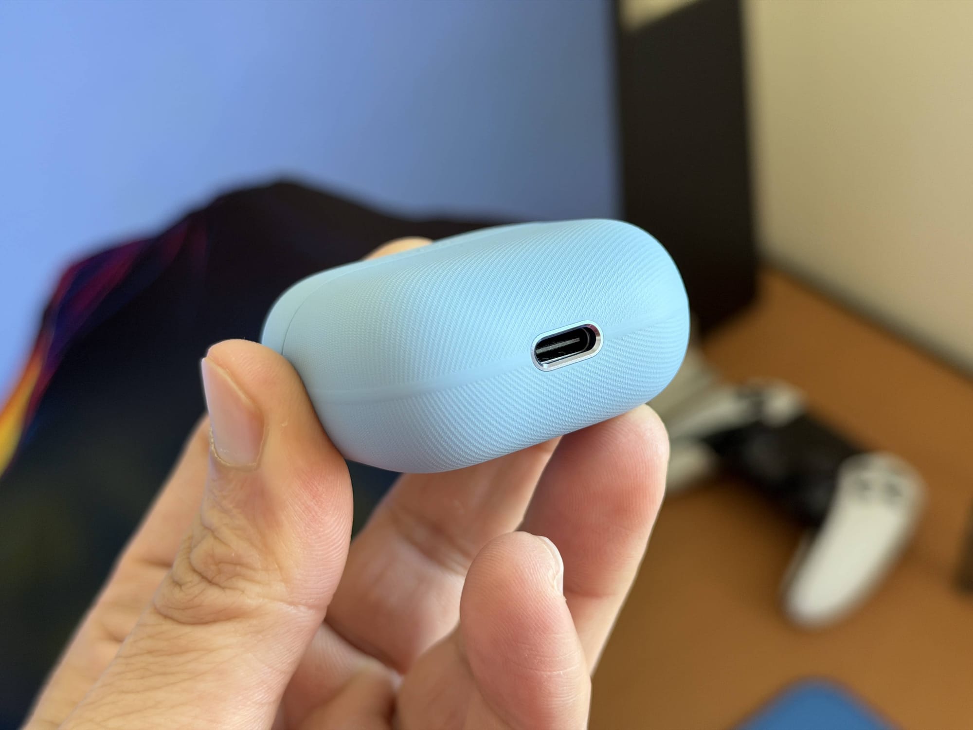 The case layout is straightforward. There’s a USBC port at the bottom, a pairing button on the right side that sits flush with the body (easy to miss if you are not looking for it), and an LED indicator that shows the case’s charging level.