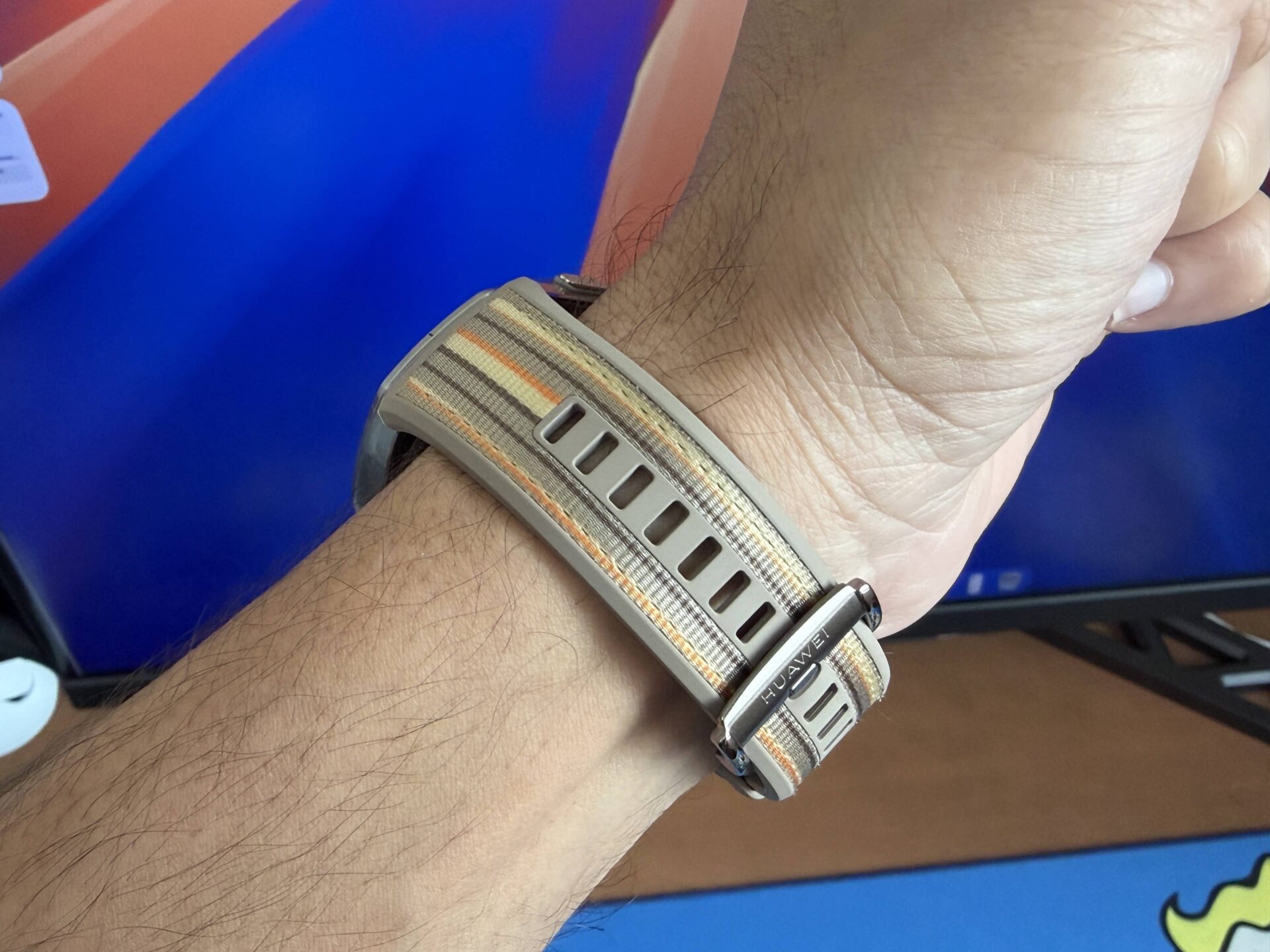 We got the Brown version with the composite woven strap, and it’s genuinely attractive - albeit too fashionable for my taste. The strap features a beautiful weave pattern with brown, tan, and orange accents that complement the titanium case quite well.