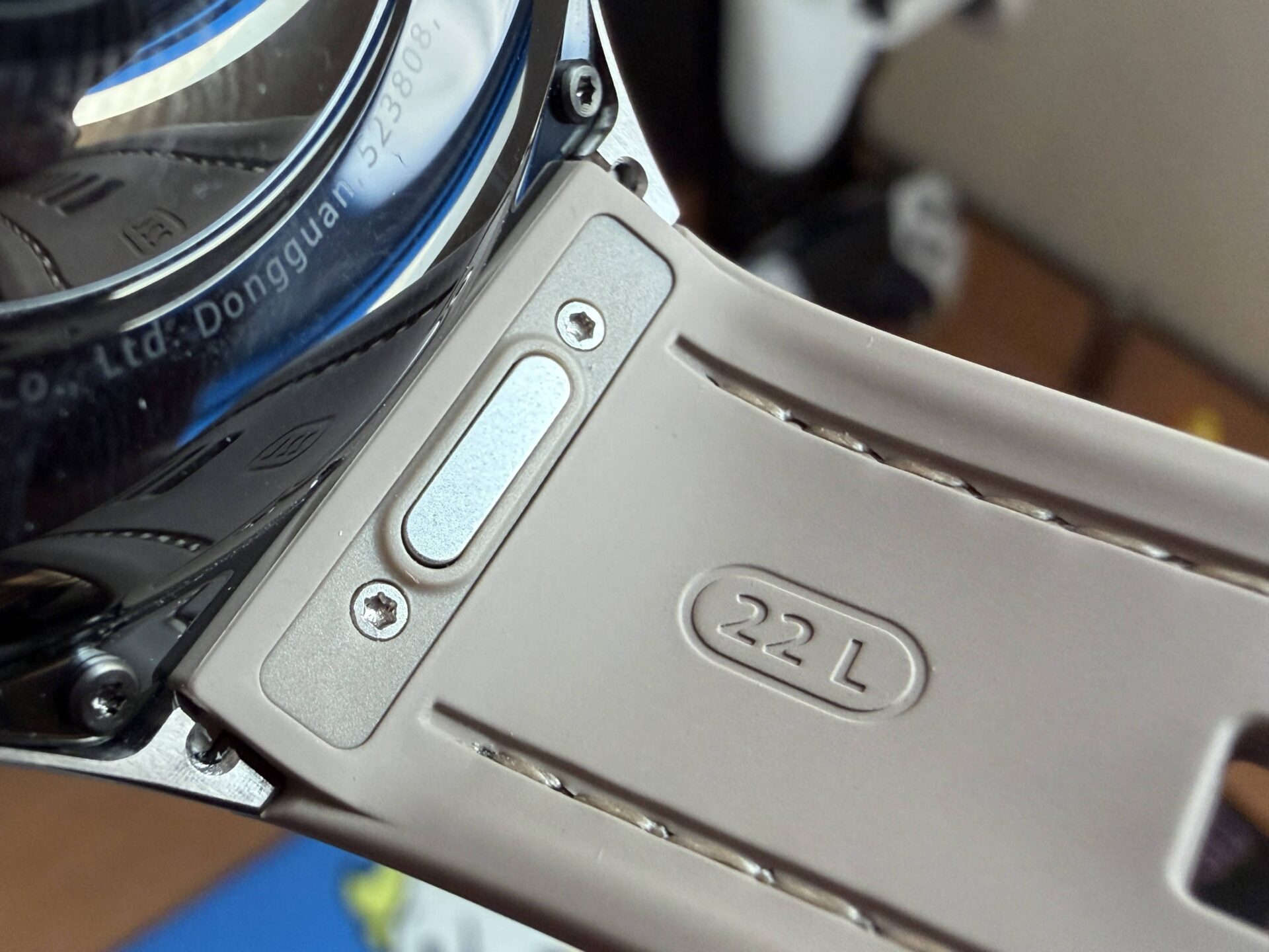 However, there’s a catch - the strap uses Huawei’s proprietary locking mechanism. While it creates a seamless transition between the case and strap, you can’t simply swap in standard 22mm bands. The system uses pins like standard straps, but includes two small metal plates that slide into guiding slots on the watch body. It looks clean, but it limits your strap options to Huawei’s own ecosystem.