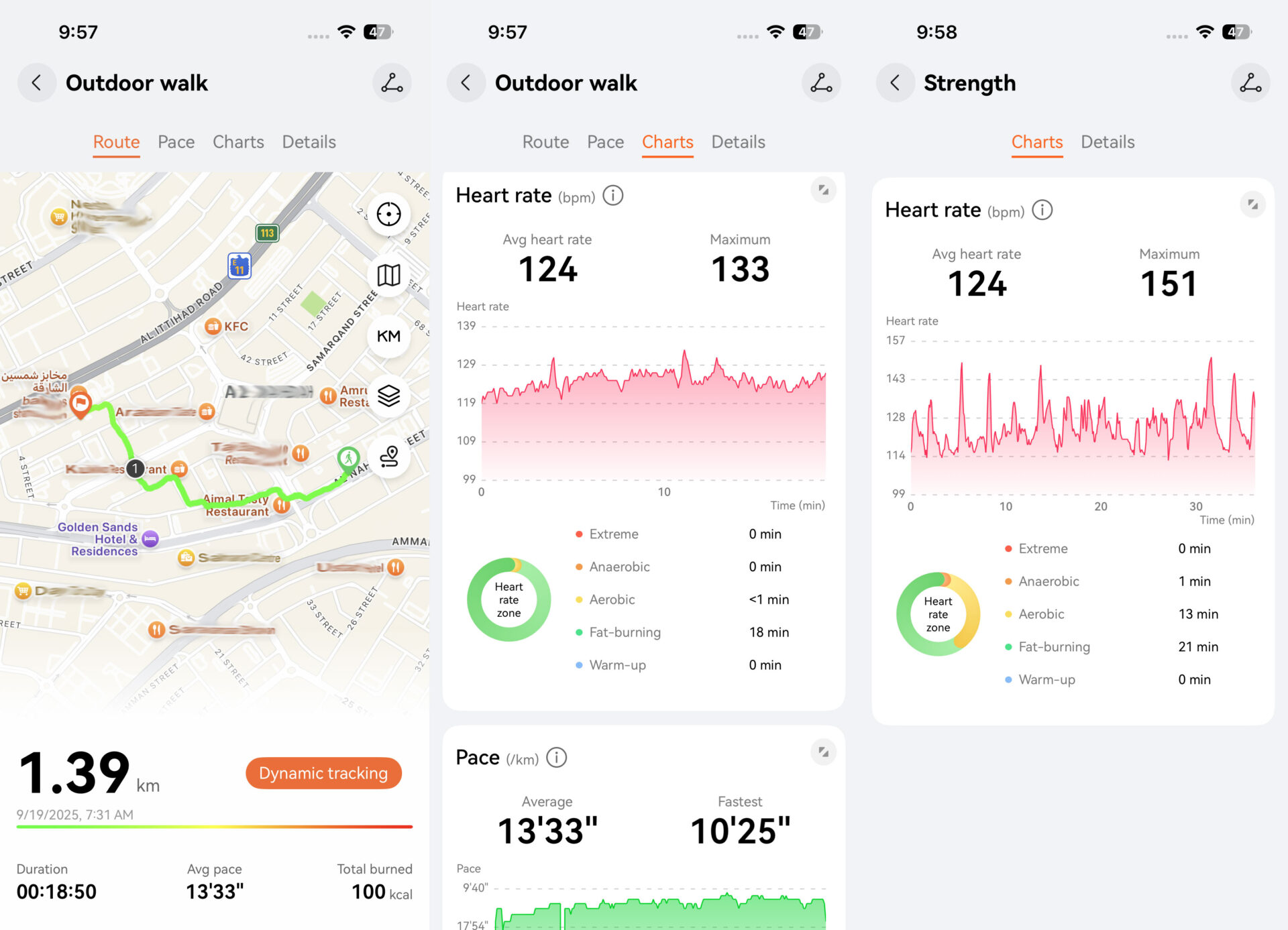 The standout feature for cyclists is the new virtual power meter functionality. Huawei spent considerable time perfecting algorithms trained on over 1000 datasets across different bike types, rider weights, heights and wind conditions. However, we can’t speak to absolute accuracy without extensive testing against calibrated power meters as neither I or anyone from the team rides bikes professionally. But even if it comes close to the actual thing, you are saving thousands of dirhams on physical hardware, which would be quite impressive. You can also import courses, upload maps, and even turn your phone into a secondary bike computer display showing workout data, making it easier to read while cycling.