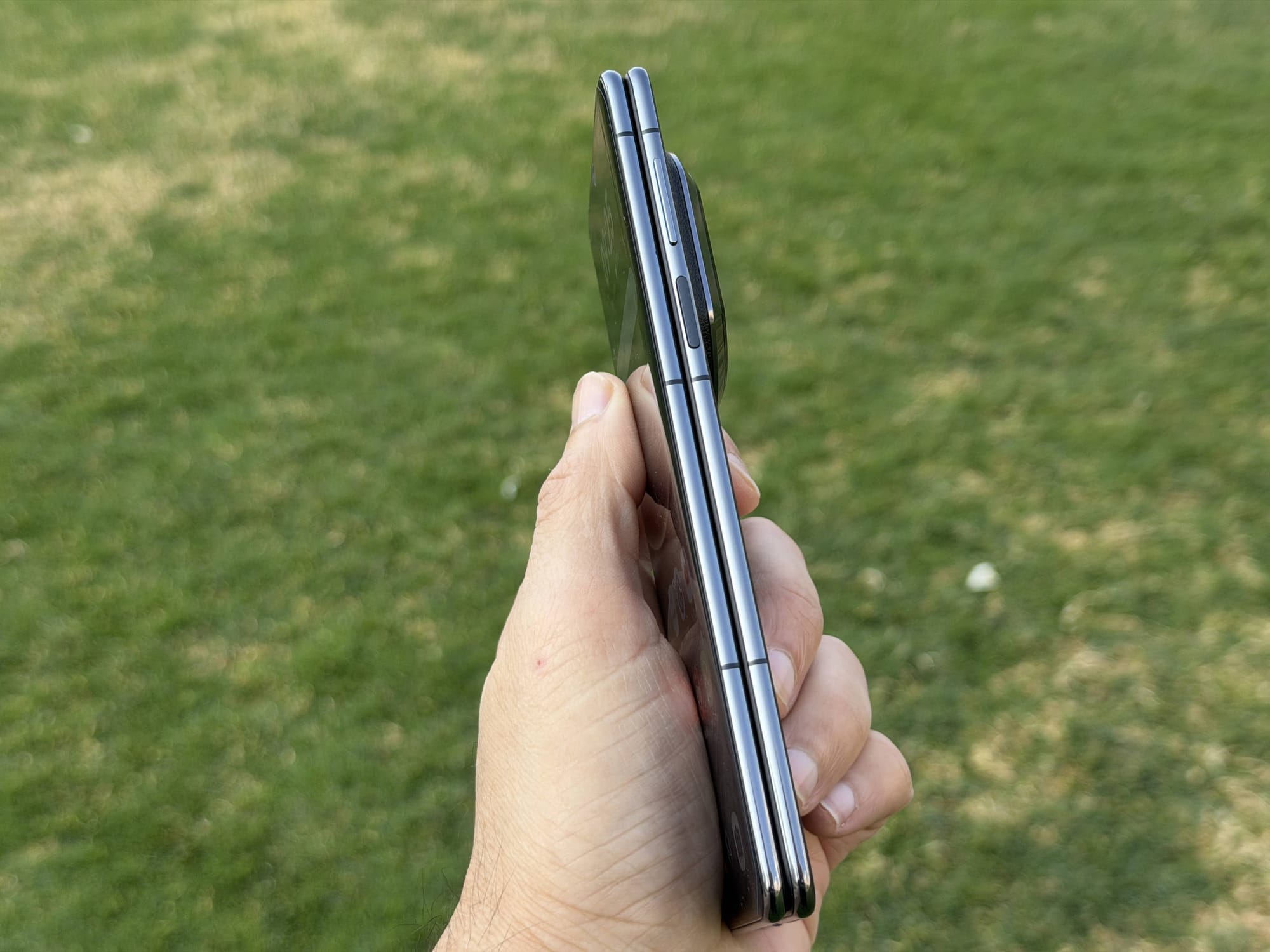 And before you ask, yes, the crease is noticeable in all the usual angles and spots. No major upgrade has been made on that front. It’s a non-issue unless you look at the phone from the side or have a white background as wallpaper, and it mostly disappears from sight when consuming content. Whether the hinge will stay flat - a slim 4.5mm at that - over time remains to be seen, but the sturdy build and high-quality components do give some confidence.