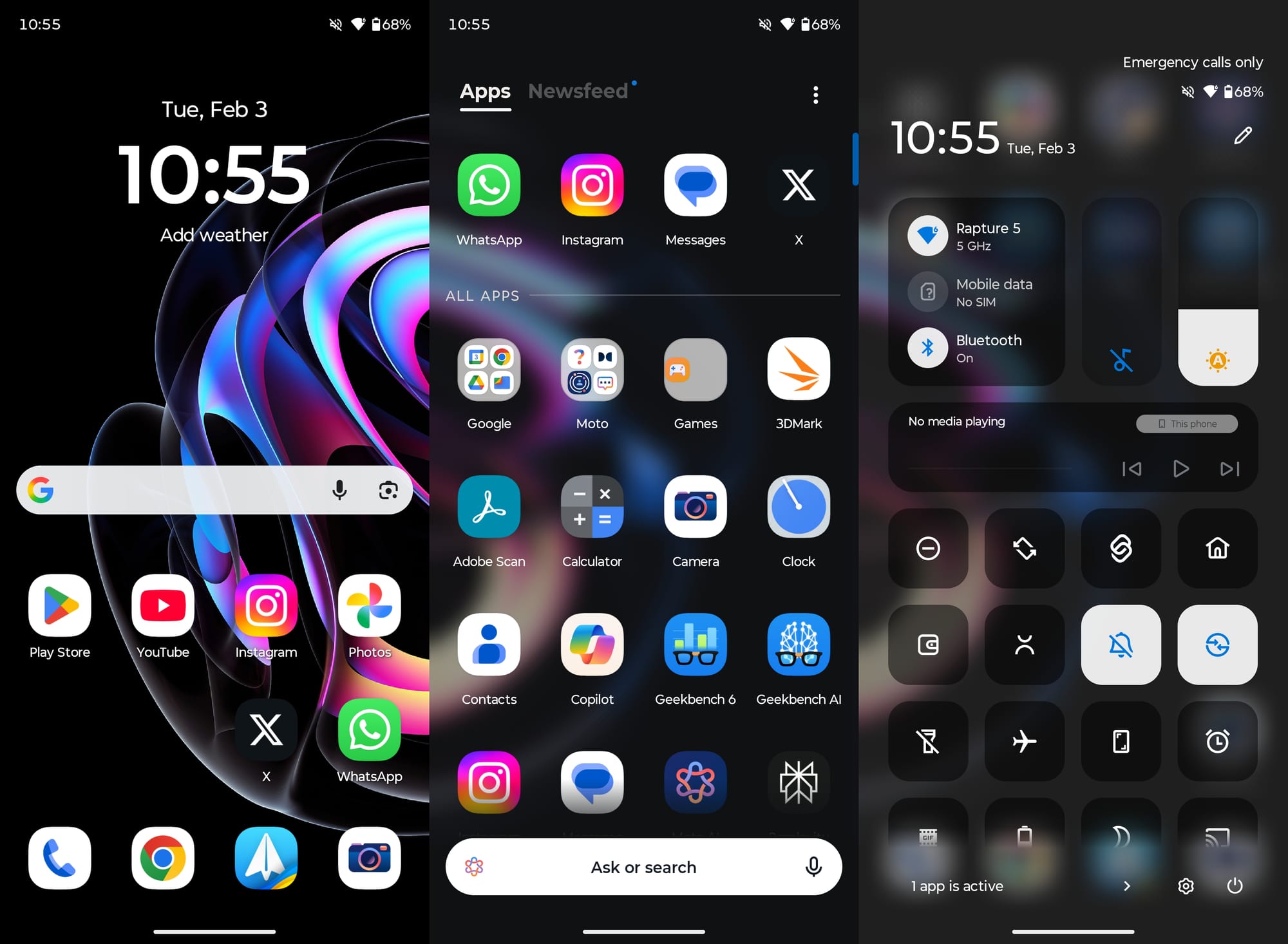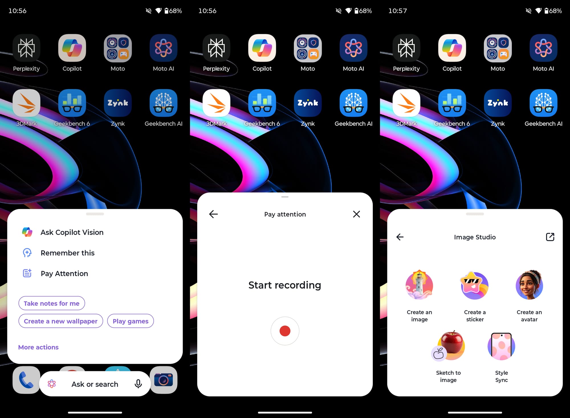 Moto AI is here too and can be summoned with the dedicated button on the side. It acts as a personal assistant with chatbot-like features that connect to Perplexity or Copilot, either automatically or on demand.