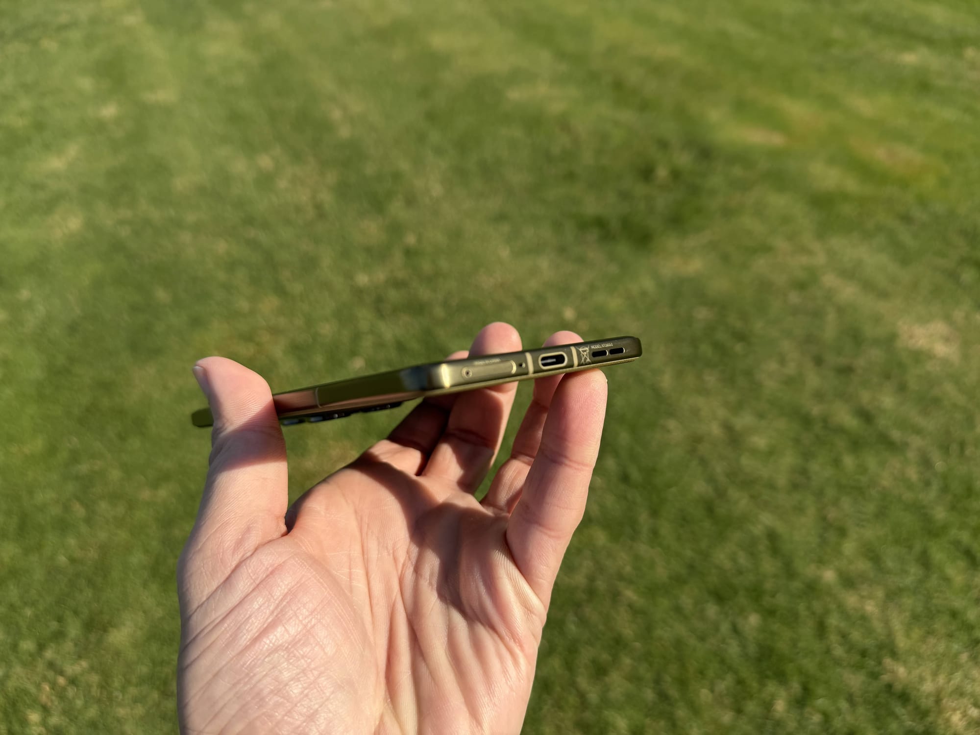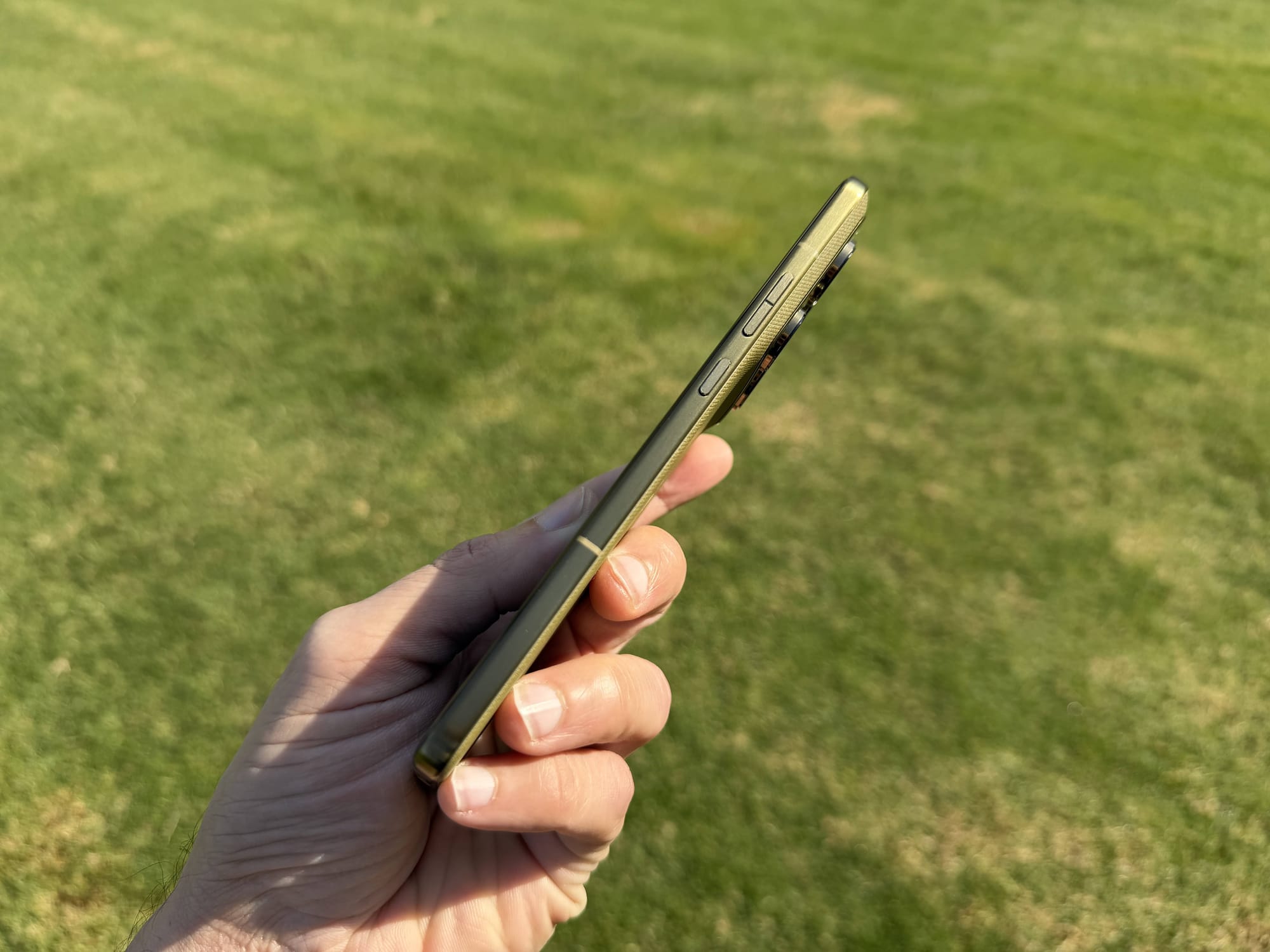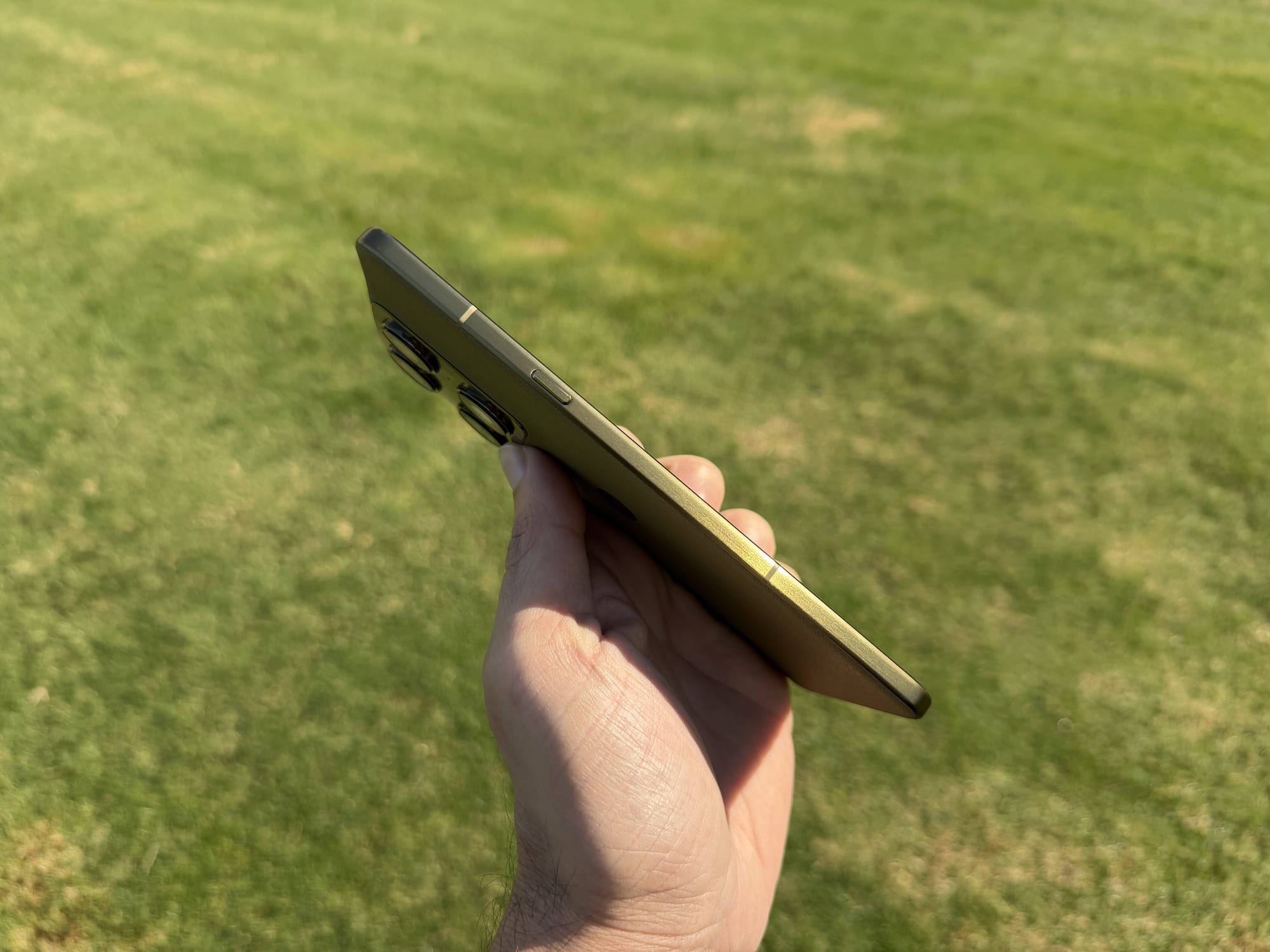 For comparison's sake, the iPhone 17 measures at 7.95mm, the iPhone 17 Pro at 8.75mm, the Samsung S25+ at 7.3mm, and the S25 Ultra at 8.2mm. The build quality is pretty top-notch, utilising an aluminium frame and a unique finish on the back that Motorola calls a “twill-like weave” for the Pantone Martini Olive variant.