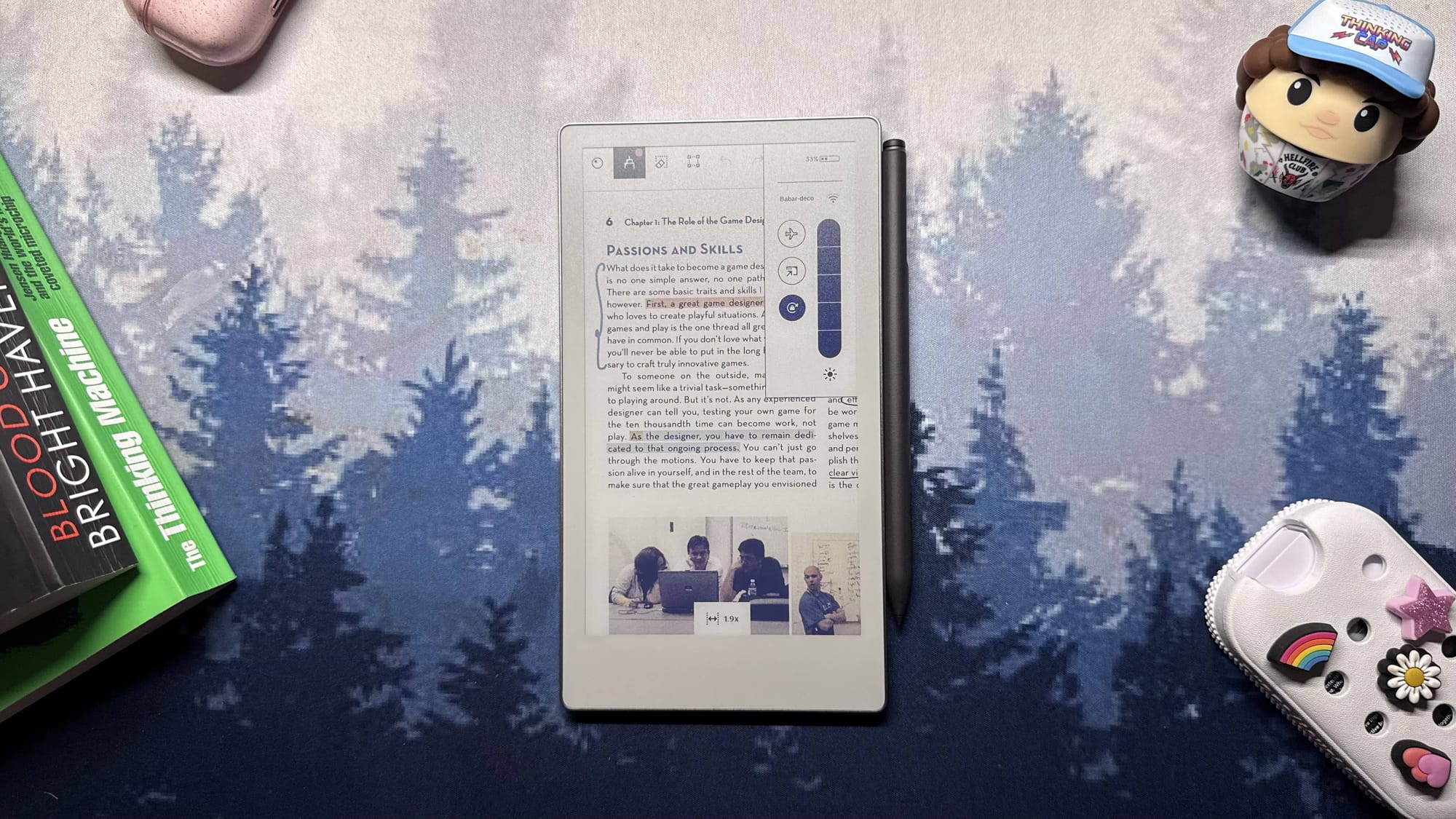 The 16:9 aspect ratio is a mixed bag. It works well as a note-taking canvas because it feels like a small notepad that you can use in portrait or landscape. For books and PDFs, it is less friendly. Pages feel narrow in portrait and cramped in landscape, especially for complex PDFs and documents with dense layouts.
