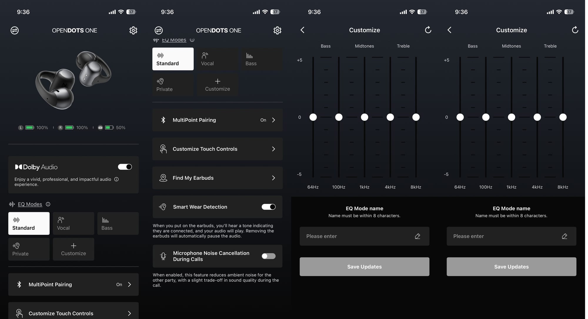 Speaking of the app, it’s clean and gets the job done. You get four preset EQ modes - Standard, Vocal, Bass, and Private (to reduce audio leakage due to the open-ear design) - plus the ability to create custom profiles. However, the custom EQ only features five bands to tune, which is quite basic for a premium product like this.