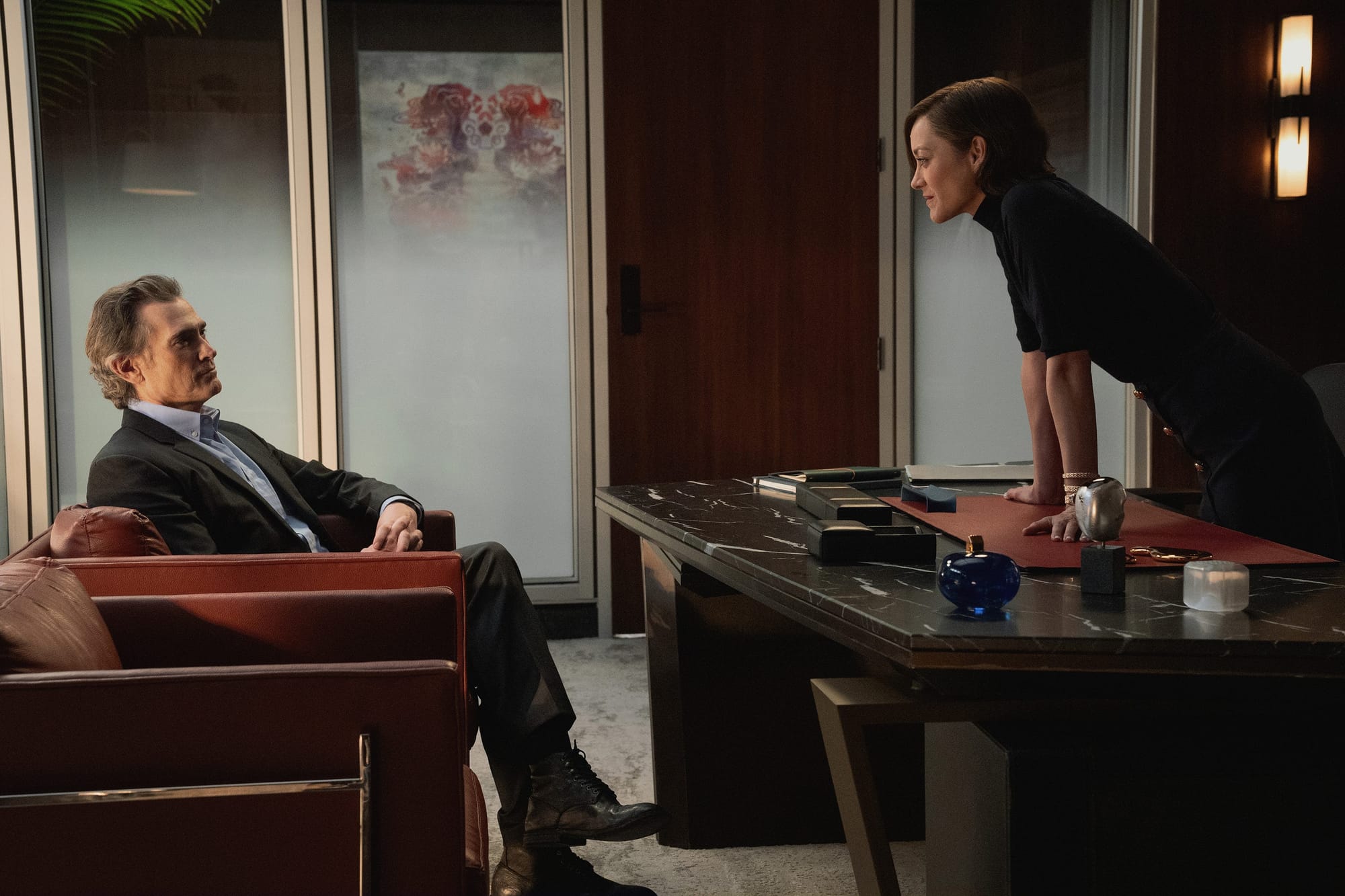 What the episode lacks in big swings, it makes up for in carefully placed landmines. Cotillard’s Celine stays icily composed as pressure builds around her. Brodie lurks, still more threat than player, but clearly waiting for the moment to strike. Chris’s internal conflict gets more space this week, as she navigates motherhood alongside the creeping realization that UBN might not be as clean as it pretends. Alex, pulled in every direction, begins to show cracks again, not the emotional breakdown kind, but the quieter kind that surfaces when you realize you’re not the one holding the steering wheel anymore.